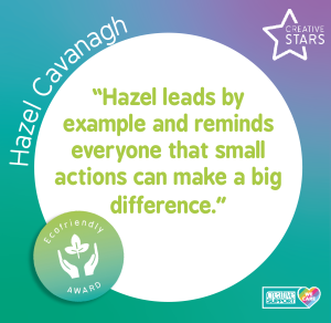 Through these small but meaningful actions, Hazel is helping to promote environmentally friendly choices within her service. It’s been wonderful to see the positive impact of her enthusiasm and the way she inspires those around her to make a difference every day.