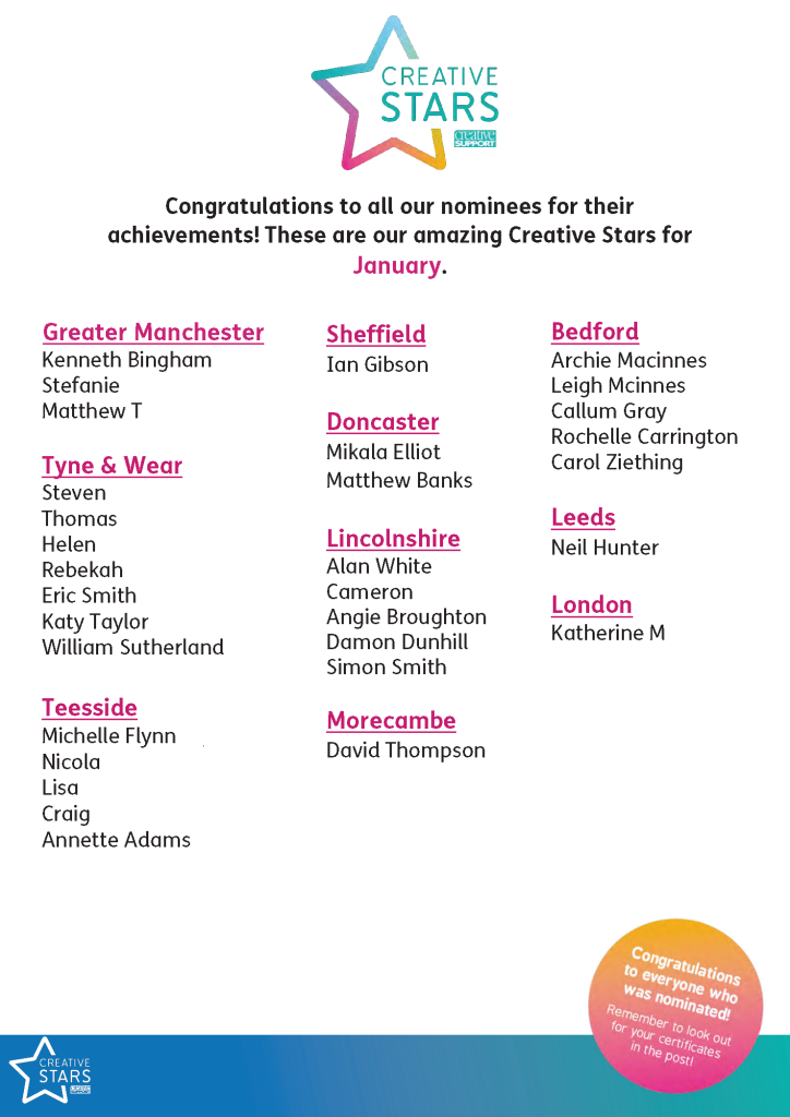 If you’re interested in hosting a judging panel, get in touch by emailing creative.stars@creativesupport.co.uk or by giving us a ring on 0161 236 0829.