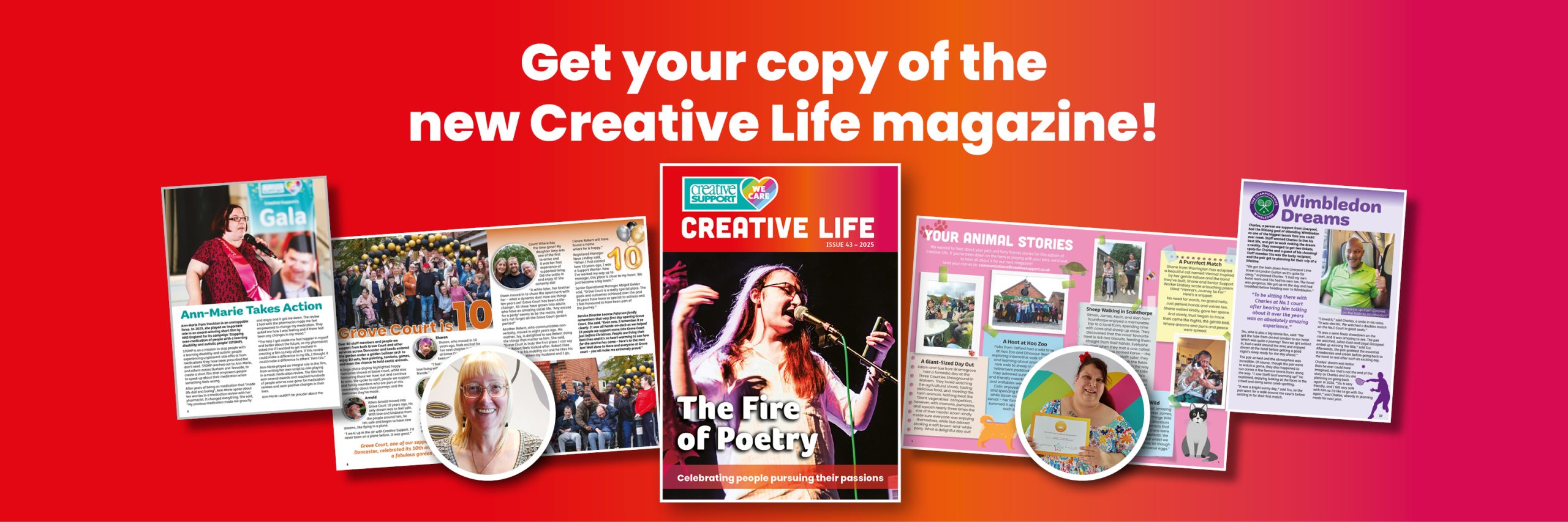 For our next issue of Creative Life, we’re looking for people we support to join our editing team. We’d also love to hear your stories. Get in touch via communications@creativesupport.co.uk
