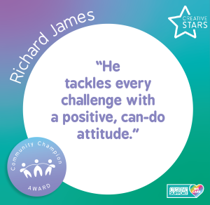 As his confidence has grown, Richard has really enjoyed getting more involved in service activities and joining in with community events. He approaches every challenge with a positive, can-do attitude and truly is a community champion!