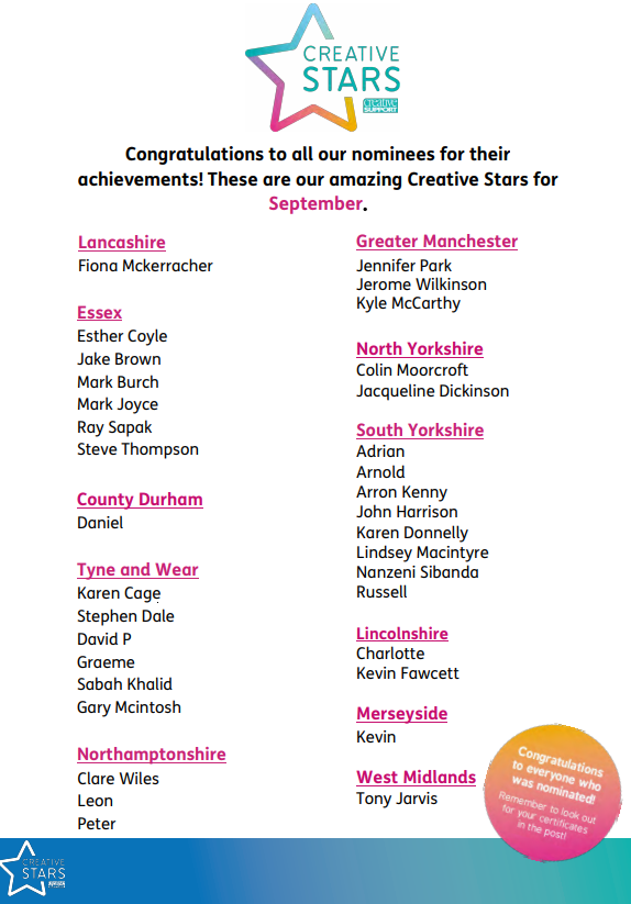 Congratulations to our latest round of Creative Stars winners!