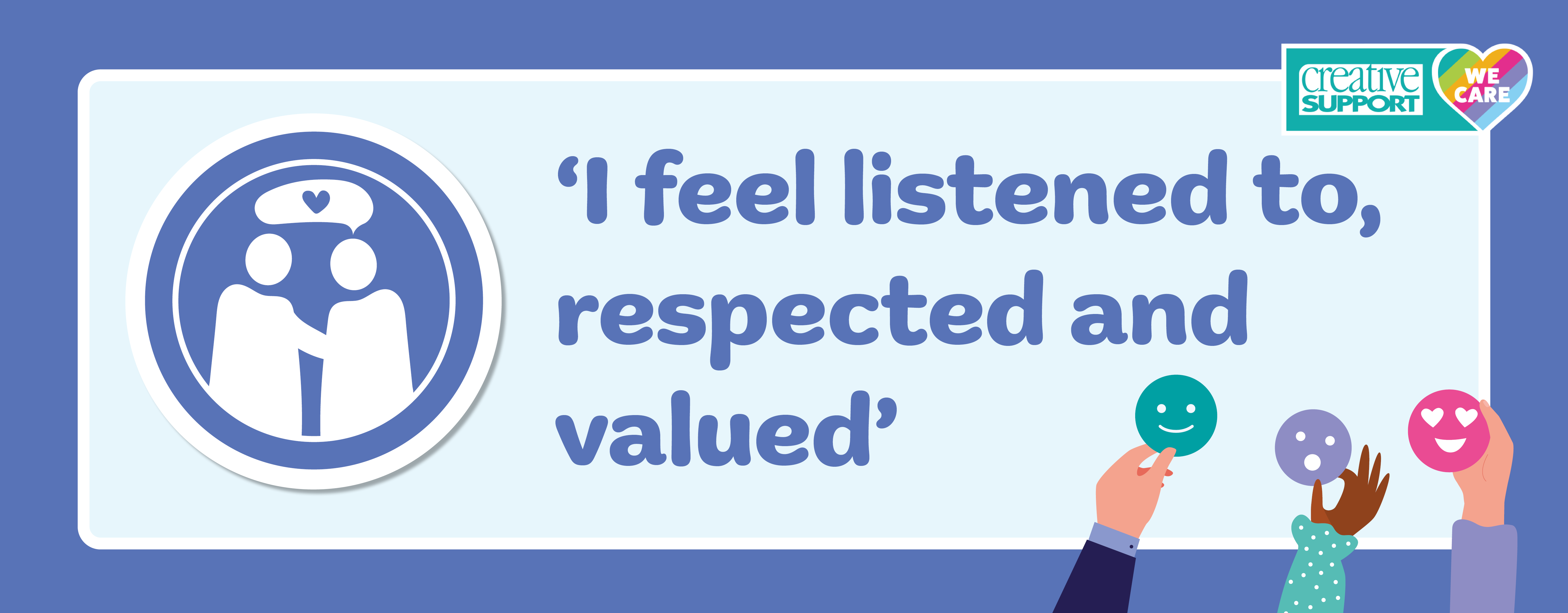 You may notice staff and people important to you always listen when you have something to say. It might be as simple and people saying their ‘please’ and ‘thank yous’. Or it may be more subtle – like laughing with you, supporting you to do activities that you like, understanding how you’re feeling before you even need to say it, and checking in to make sure you’re okay.
