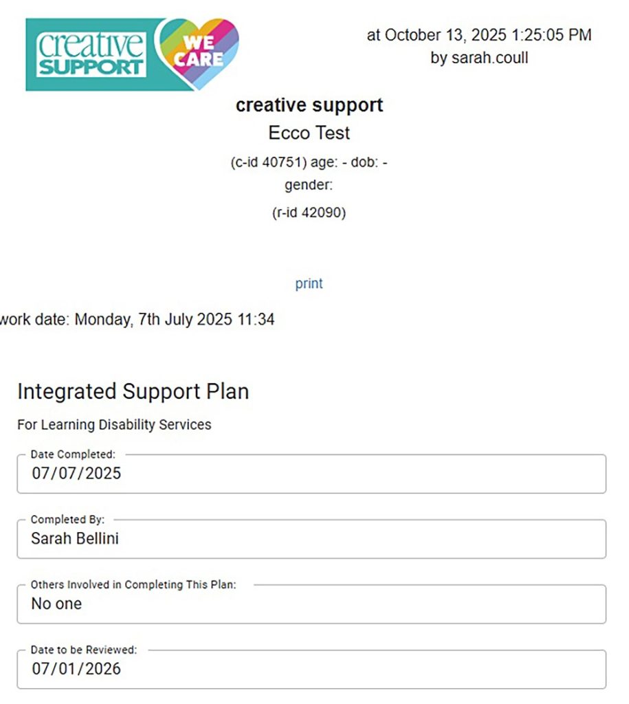 You can use an existing template for your support plans which have been created for ECCO. Example screenshots below.