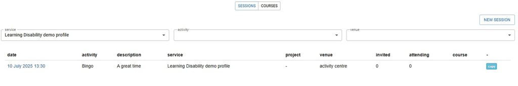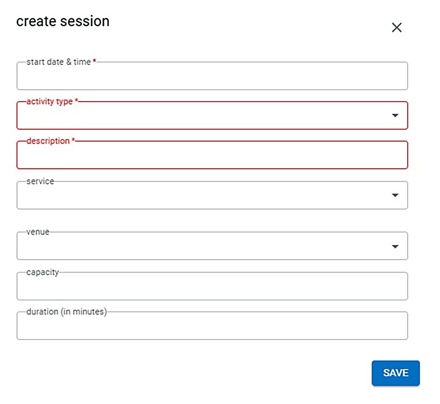 You can create a new session by clicking into this function and then ‘NEW SESSION’, then entering all relevant details.