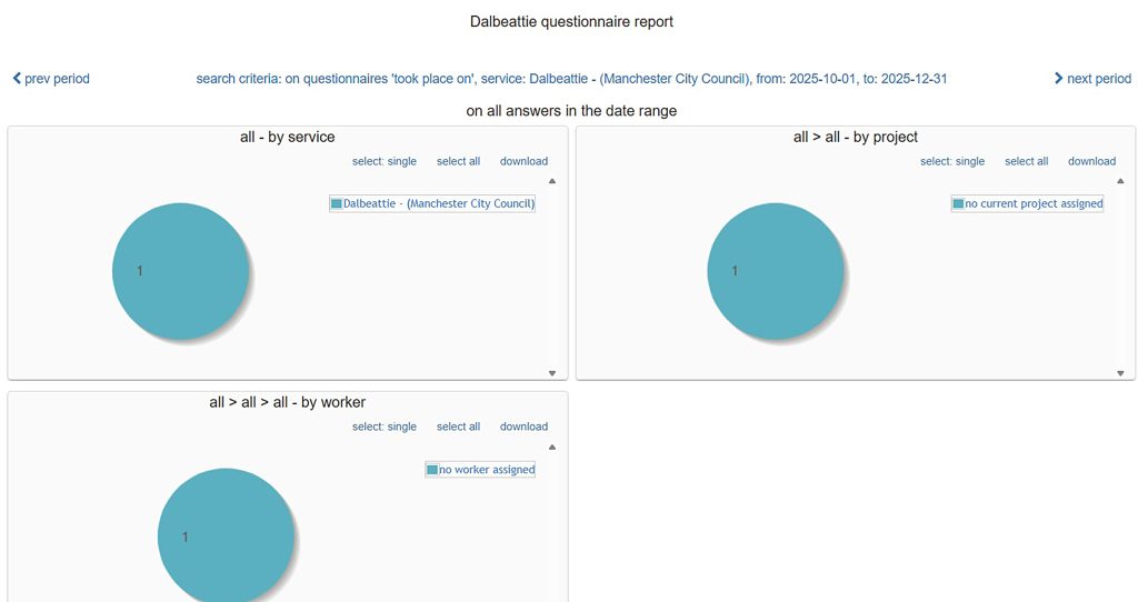 Questionnaires are better for reporting than custom forms, because the ‘question’ groups mean something to the system. For example if you have a score based questionnaire like an outcome star – the system knows for reporting purposes that these are score-based, so can form movement reports. The completion of certain answers may give a rating e.g. low / med / high that is reportable, and shows on screen for the client. If you were to add a score / choice based question to a custom form – it decides how to display the info for you – but the code doesn’t care that you are producing a score, it just sees answers as text fields.