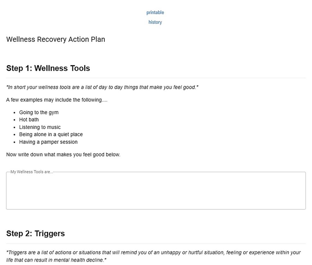 This first image is how the profile might look for an individual suffering with their Mental Health. Below you’ll also see some examples of the forms listed, one from each section.